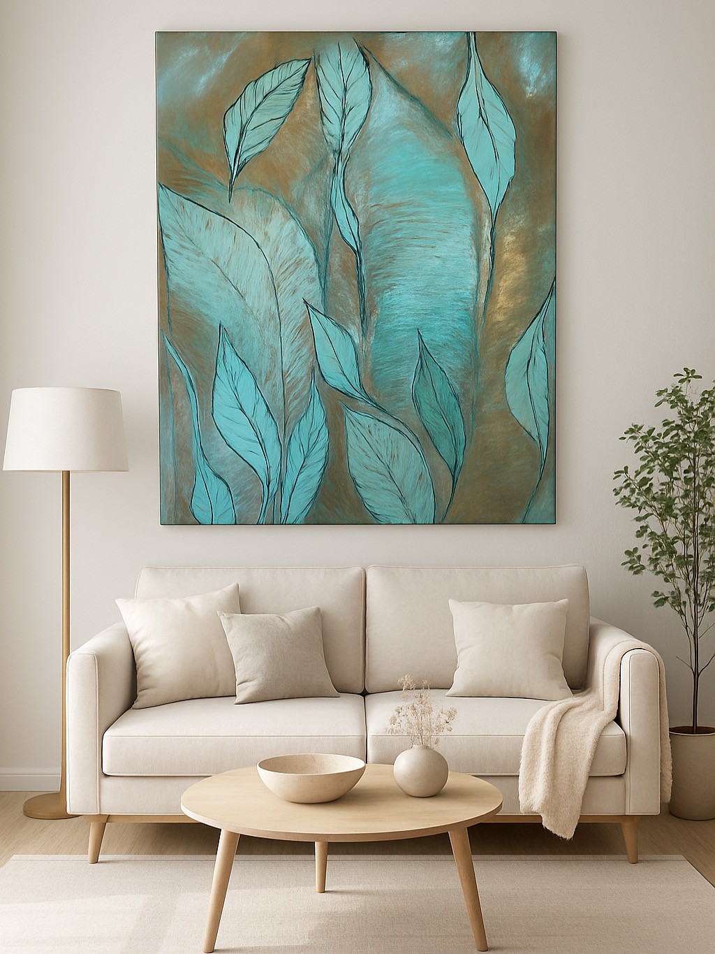 Robertas verk er håndmalte originaler med rolig palett og taktile lag som gir dybde uten å dominere rommet. Motiv og komposisjon er valgt for å skape balanse, varme og et tydelig fokuspunkt i stue, spiseplass eller soverom. Alle verk leveres klare til oppheng; innramming og levering kan avtales.